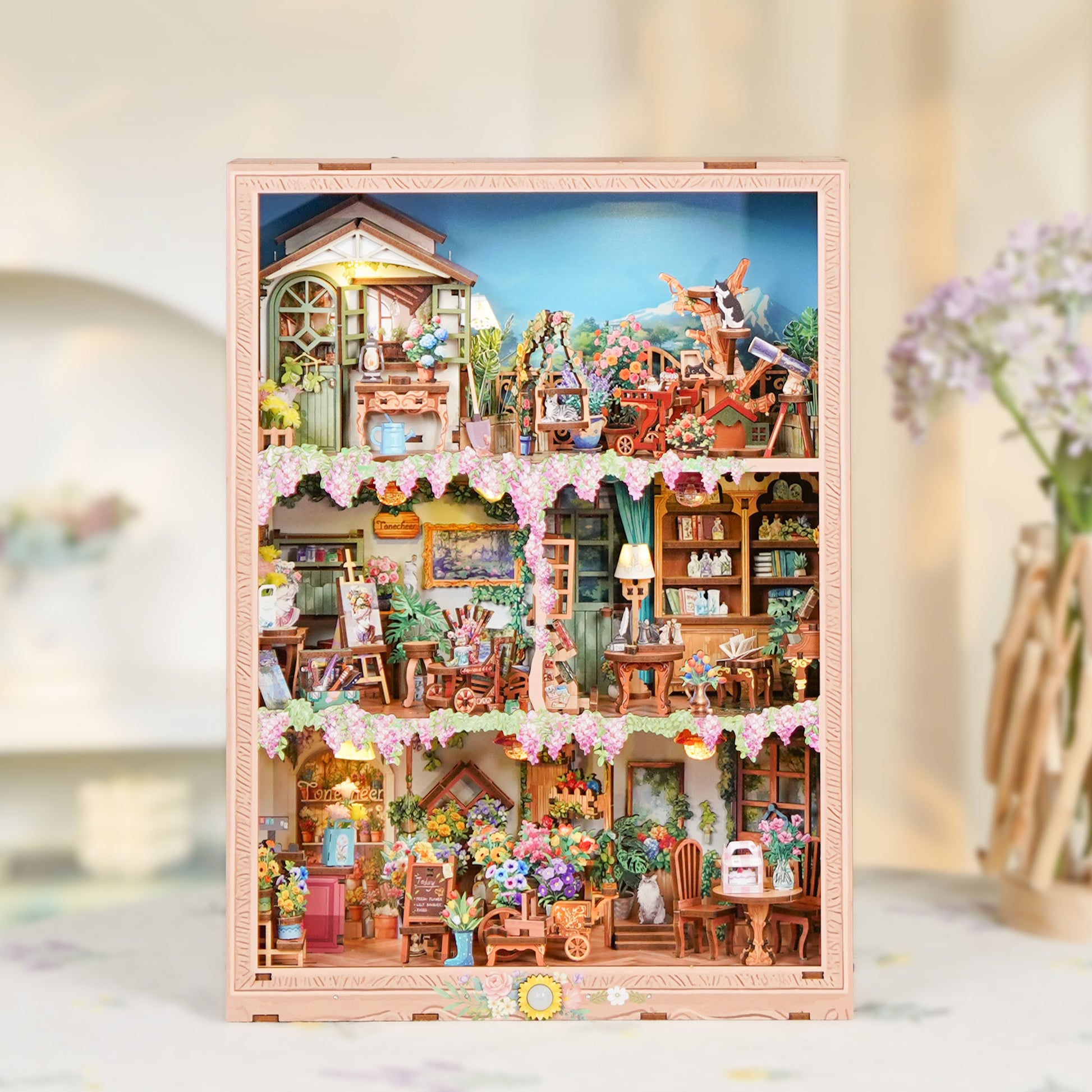 Transform your bookshelf into a serene floral escape with the Blossom Time DIY Book Nook Kit. This enchanting scene brings the delicate beauty of cherry blossoms to your home, creating a peaceful "window" into a spring day. Once completed, its sleek and sturdy design offers multiple ways to elevate your decor whether it is on the shelf or on the wall!