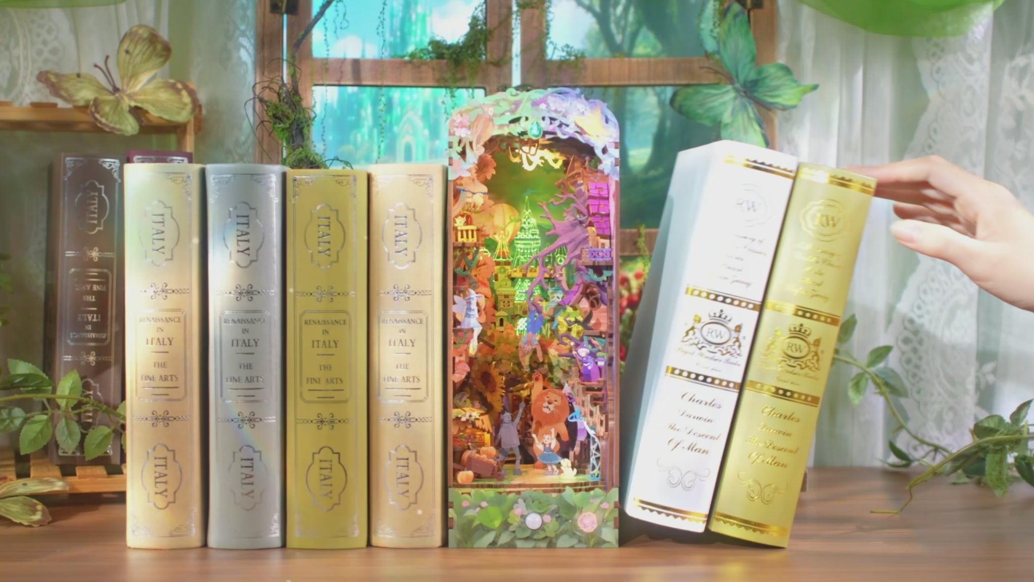 Embark on a legendary adventure with the Dorothy's Journey DIY Book Nook Kit. This enchanting scene captures the whimsical path from the poppy fields to the Emerald City, bringing the most iconic moments of the Land of Oz into your home library.