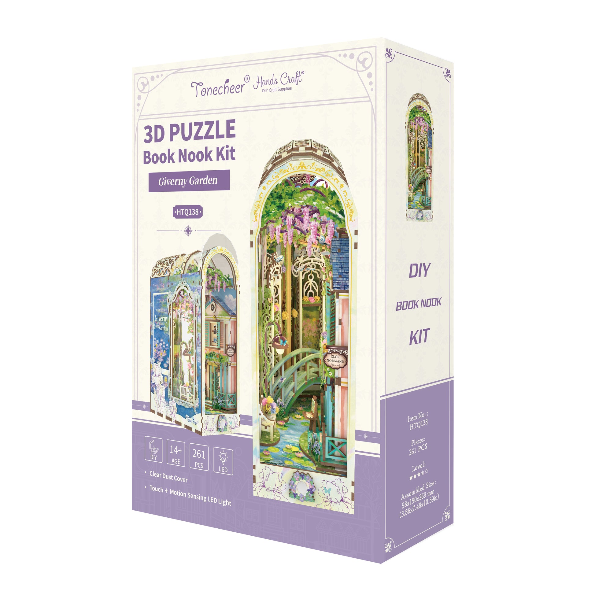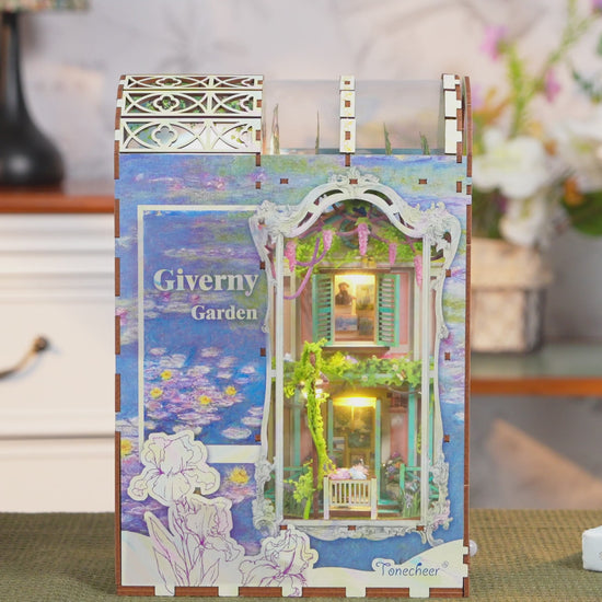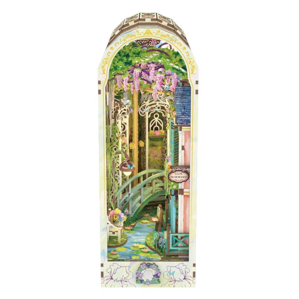 The Giverny Garden 3D Puzzle Book Nook Kit is an exquisite DIY miniature project inspired by the iconic impressionist beauty of Claude Monet's gardens. Designed to nestle between your favorite novels, this kit transforms a shelf space into a serene, light-filled sanctuary.