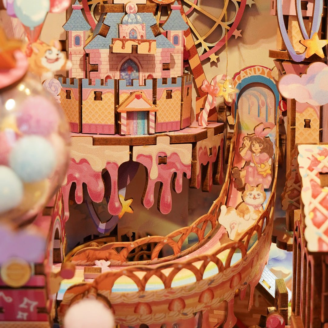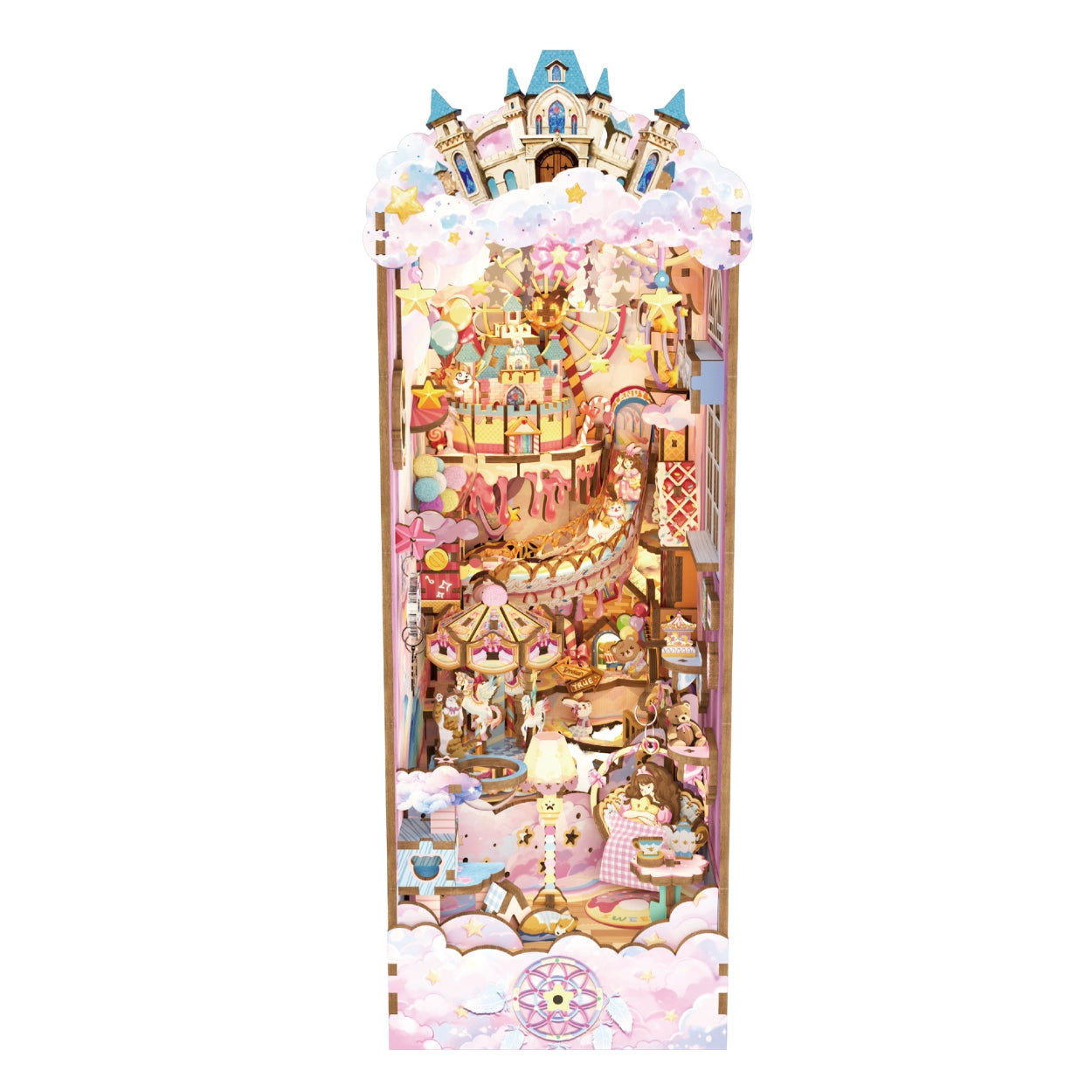 Step Into a Whimsical Wonderland. Bring the magic of the fairground to your bookshelf with the Sweet Dream DIY Book Nook Kit. This enchanting miniature world captures the nostalgic joy of a midnight carnival, tucked away between your favorite stories.